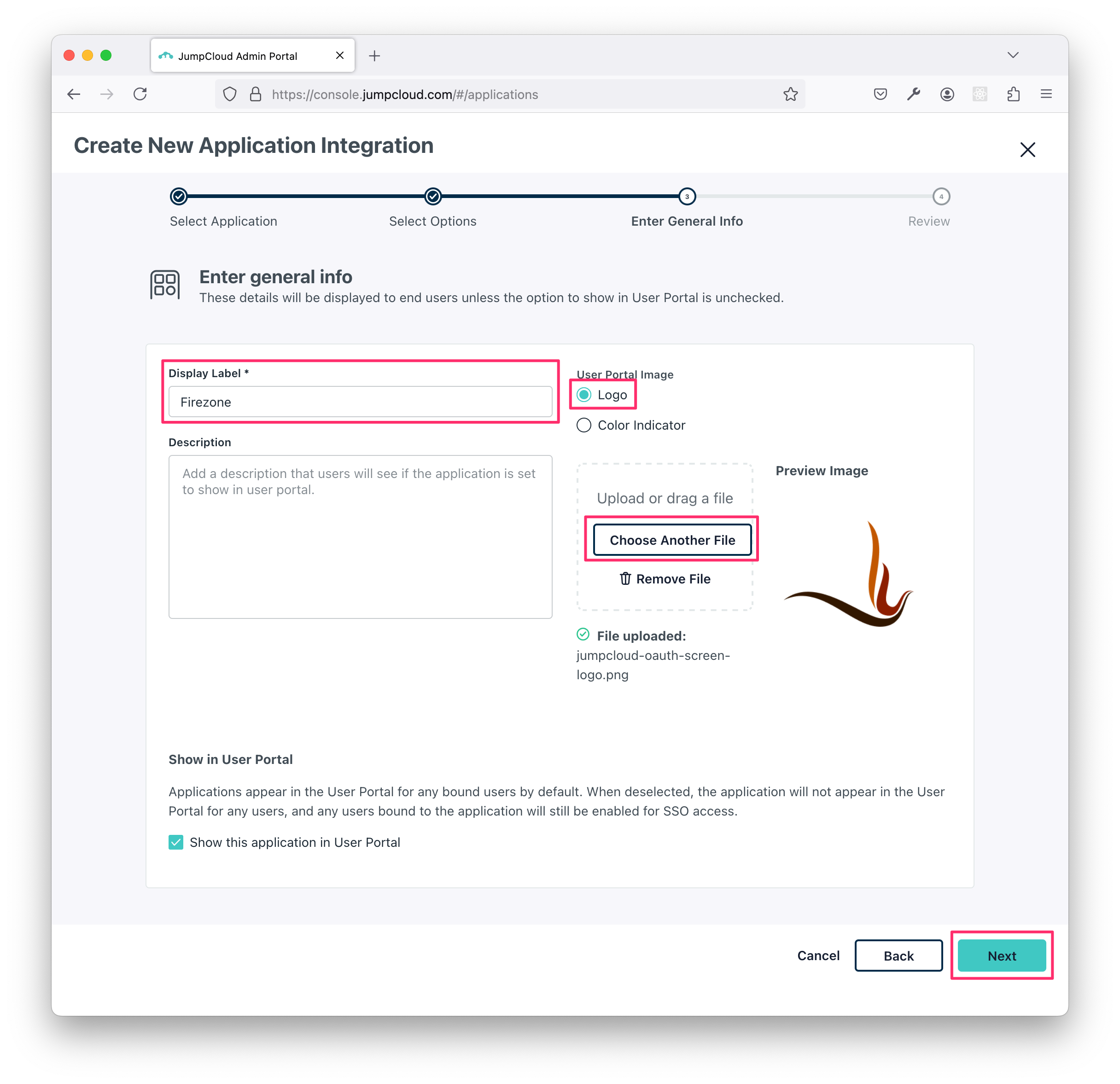 Choose Logo for the User Portal Image and use this link to download an appropriate logo to use for the app registration: