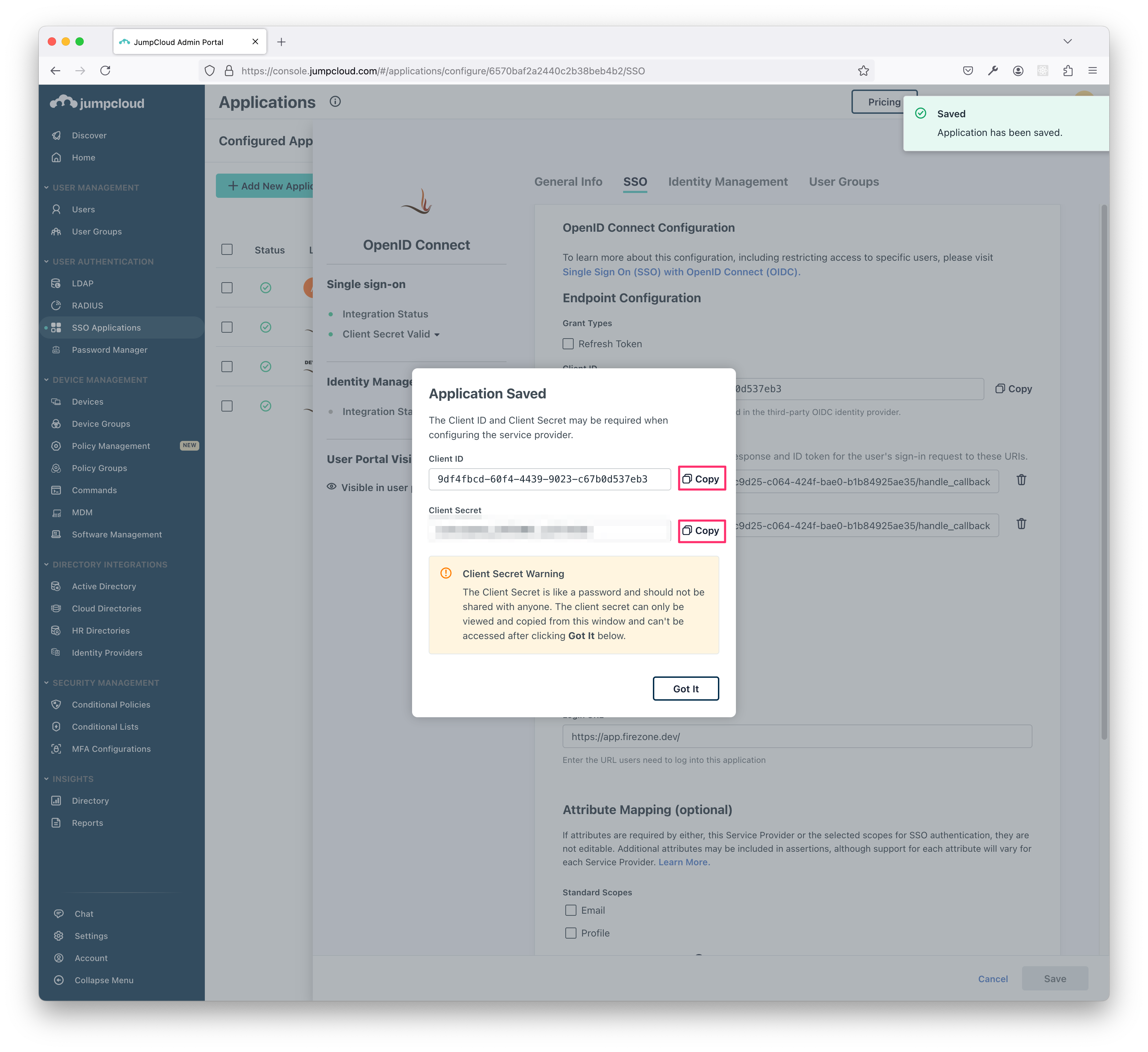 Step 3: Finish setting up the JumpCloud provider in Firezone